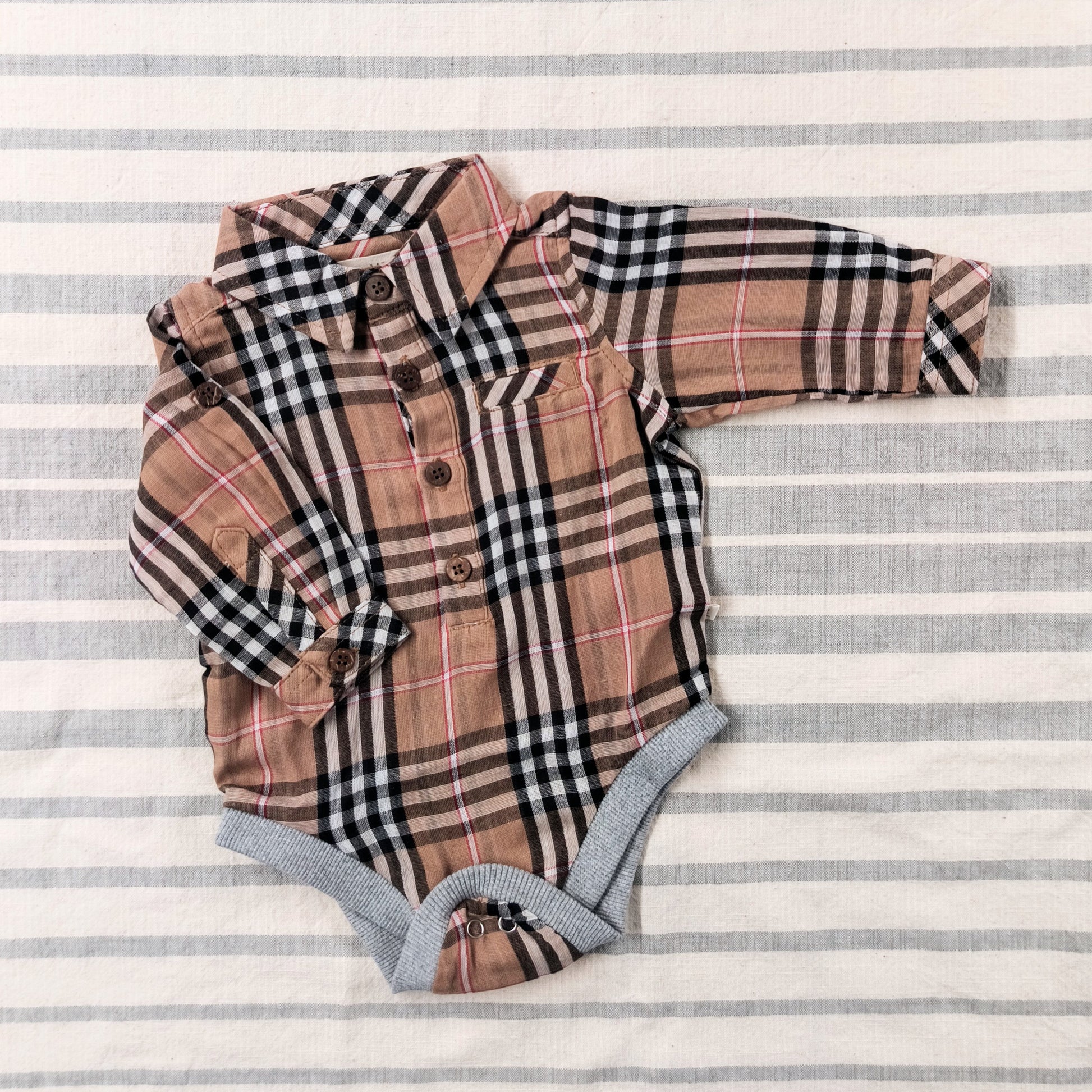 Brown Plaid Collared Onesie