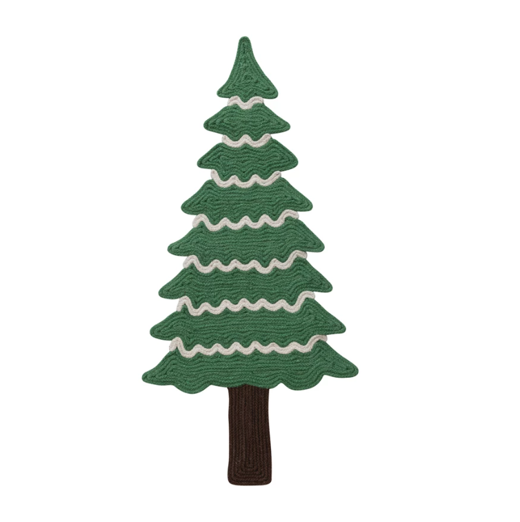36"L x 17"W Cotton Blend Appliqued Tree Shaped Table Runner, Green, Brown & Natural