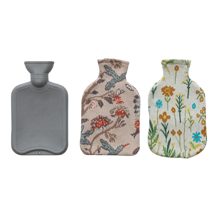 10-3/4"L x 6-3/4"W 20 oz. Rubber Hot Water Bottle w/ Cotton Knit Floral Cover