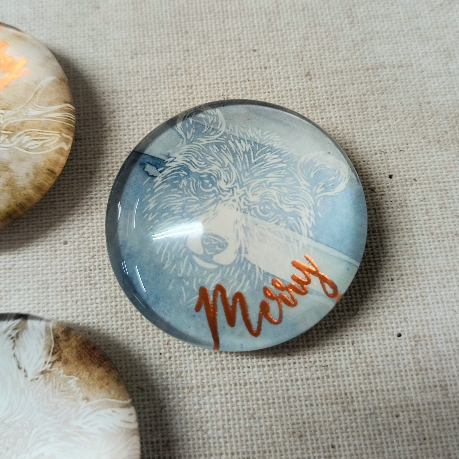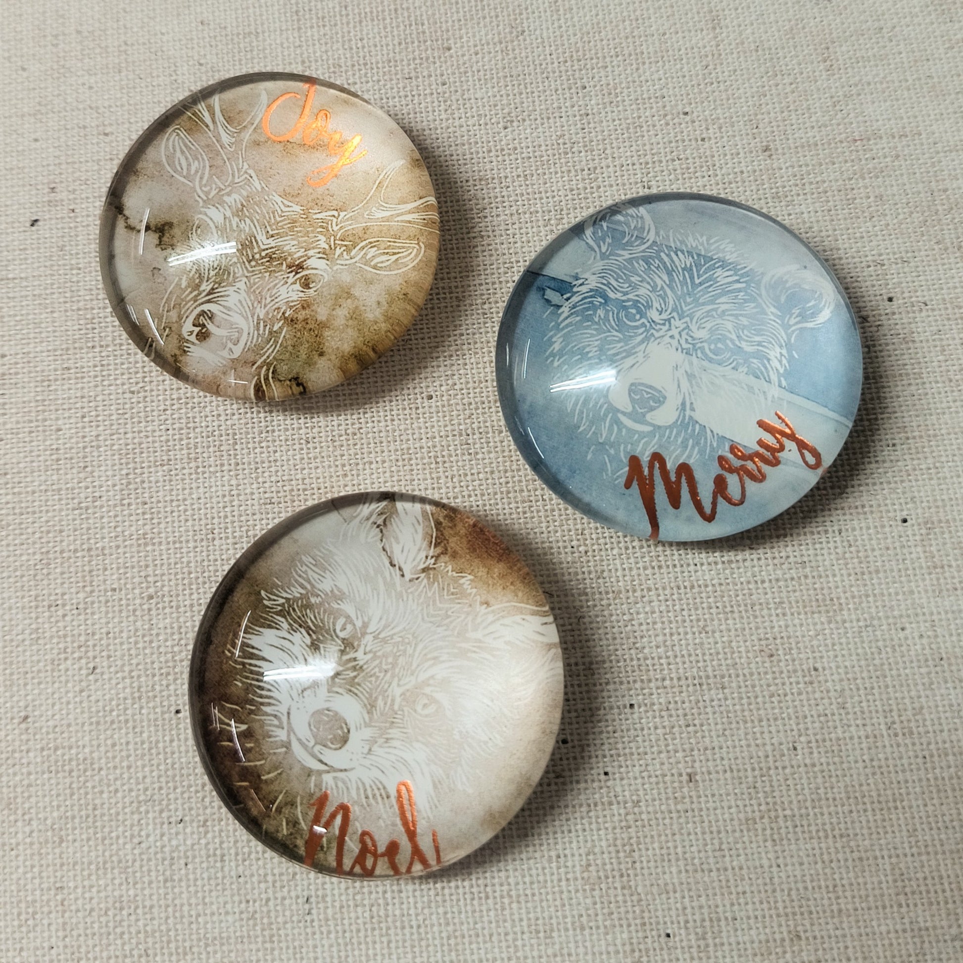 1.5"Dia Glass Christmas Magnet w/ Animal design