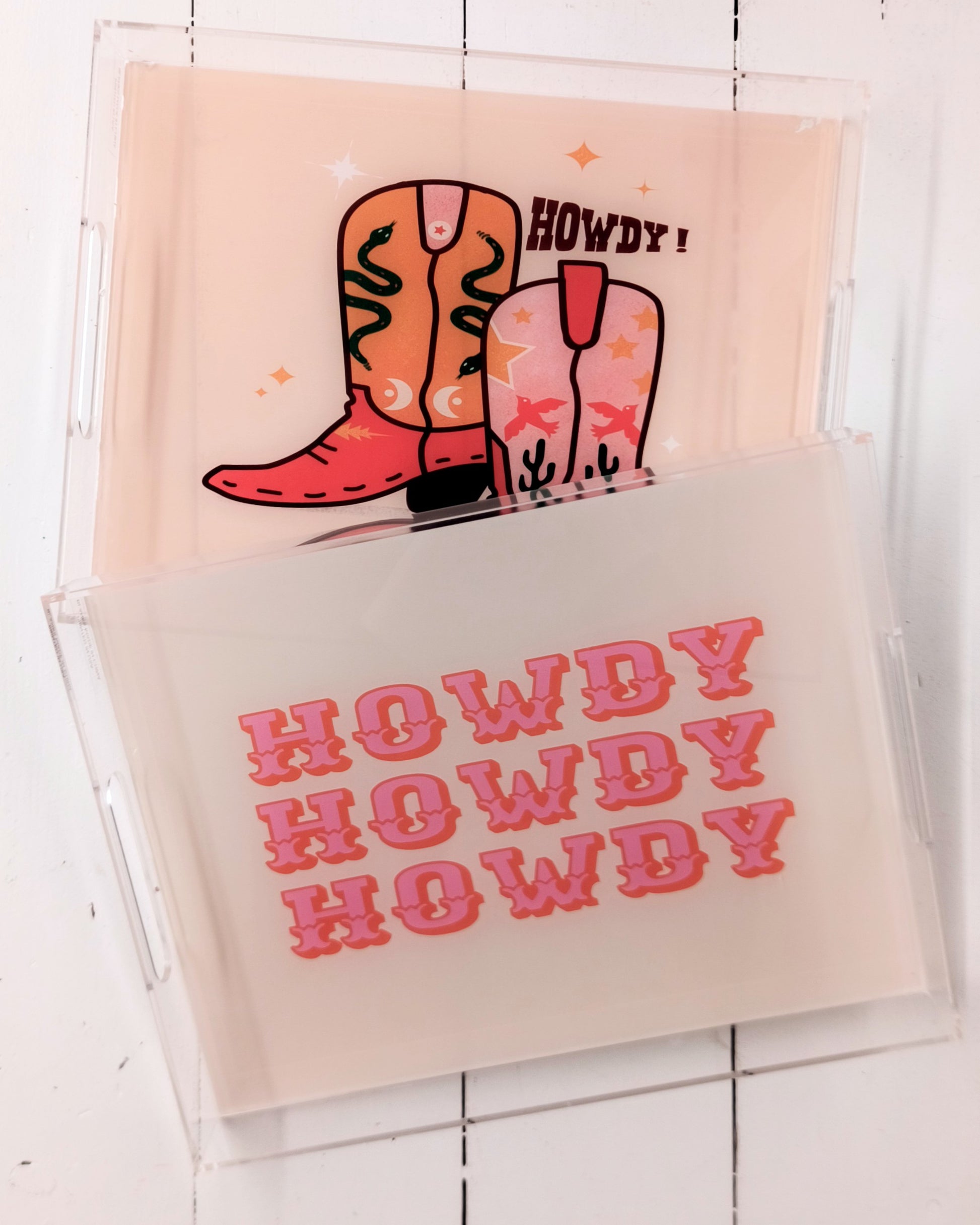 Clear acrylic tray with a colorful, fun design in the bottom.