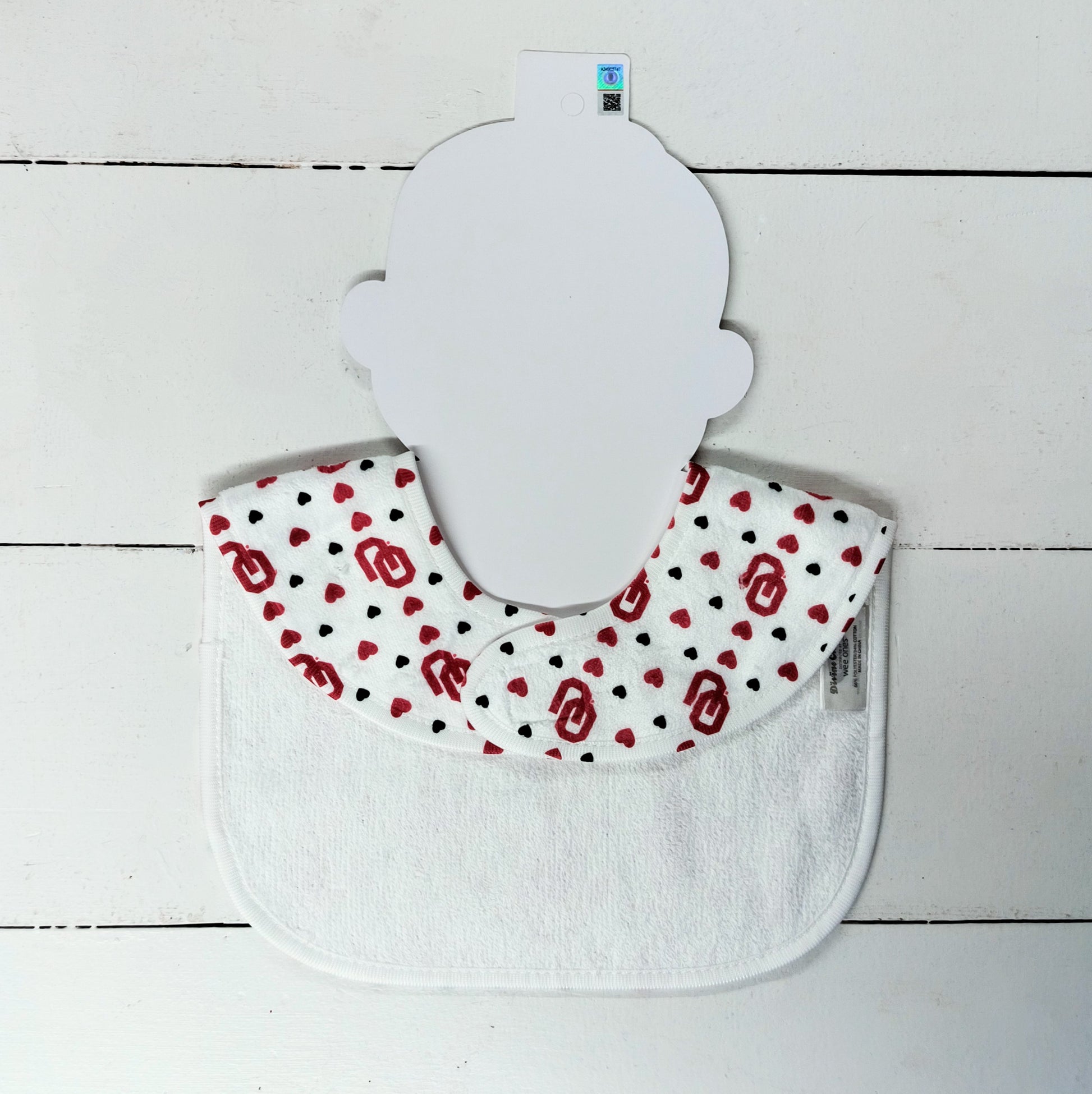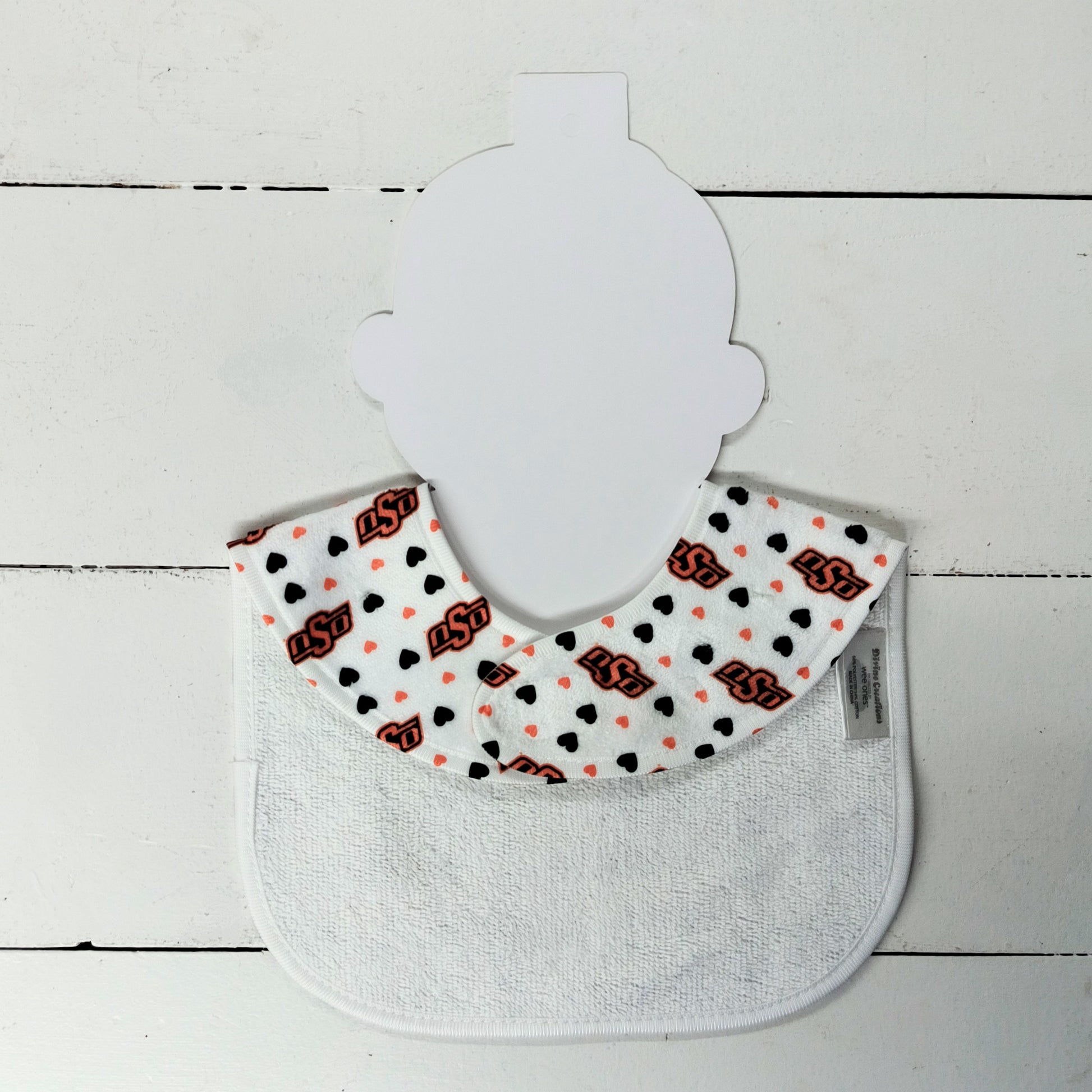 Get ready for Bedlam with these patterned bibs! They are super soft and perfect for your little Cowboy or Sooner fan. The bib has a hook and loop fastener on the strap to keep it on and secure, with a cute heart pattern. Use to prevent those day-to-day messes or bring it along on an outing to your team's game!