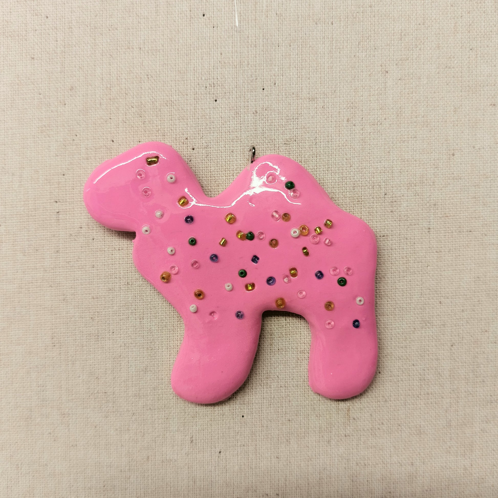 3.75" animal cracker ornament made from clay dough and beads, available in 4 styles