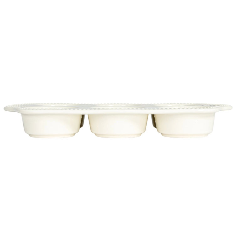 12"L x 7"W Stoneware Muffin Pan w/ Hobnail Edge & Wax Relief Saying "Happiness Is Cupcakes...", White & Black