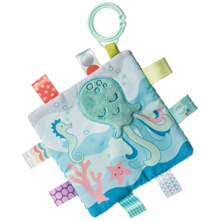 A true standalone item - Taggies crinkle squares are winning awards for their combination of stimulation (squeaker and crinkle paper inside) and soothing features (eight Taggies ribbons and textured fabric appliques).