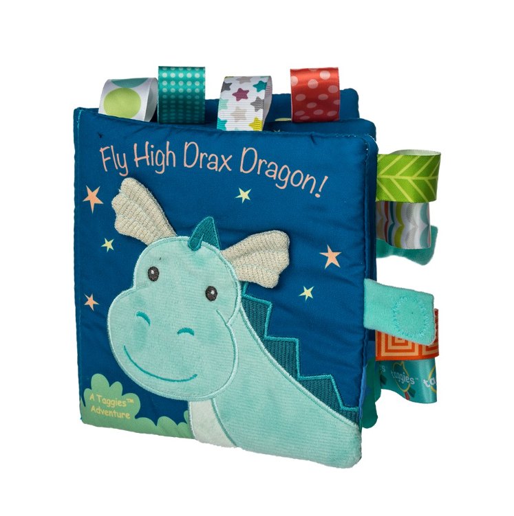 Taggies books are winning awards for their combination of stimulation (squeaker and crinkle paper inside) and soothing features (eight Taggies ribbons and textured fabric covers). Each book tells a short, sweet story in eight pages with Velcro® closure.