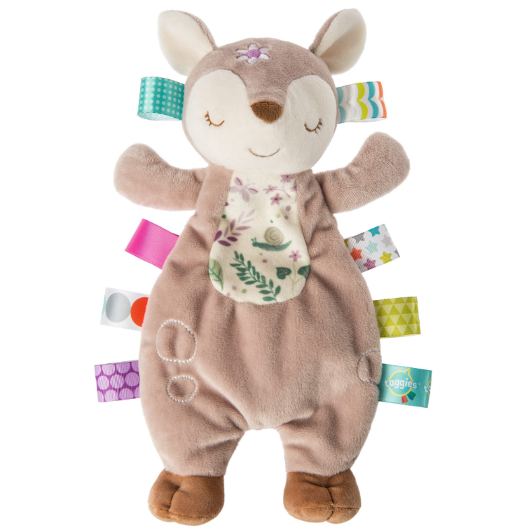 Taggies was born over a decade ago when a mom noticed her child's fascination with satin tags. This idea blossomed into a world of treasured products. Little ones are mesmerized by rubbing these soft, satin loops. Exploring Taggies textured tags can provide tactile stimulation that babies crave for development and have an amazing calming effect on little ones. Discover the secret too!
