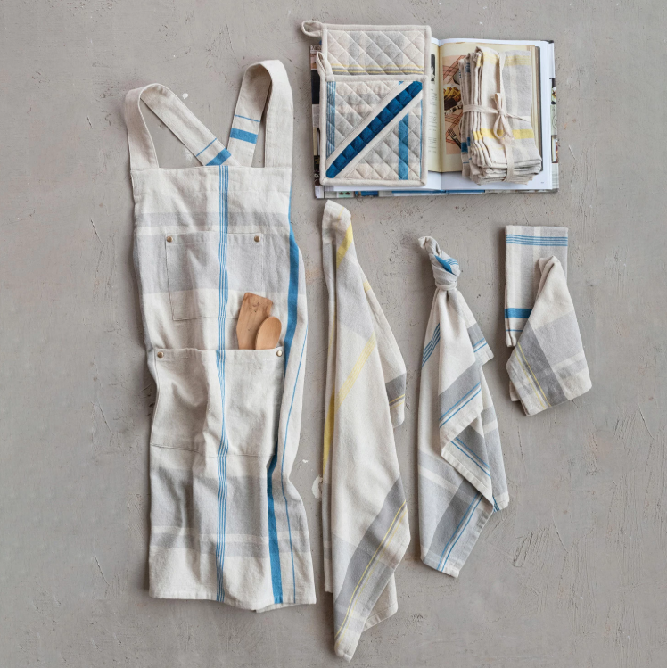 Woven Cotton Plaid Apron w/ Buttons & Rivets